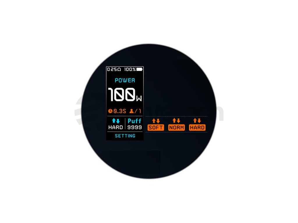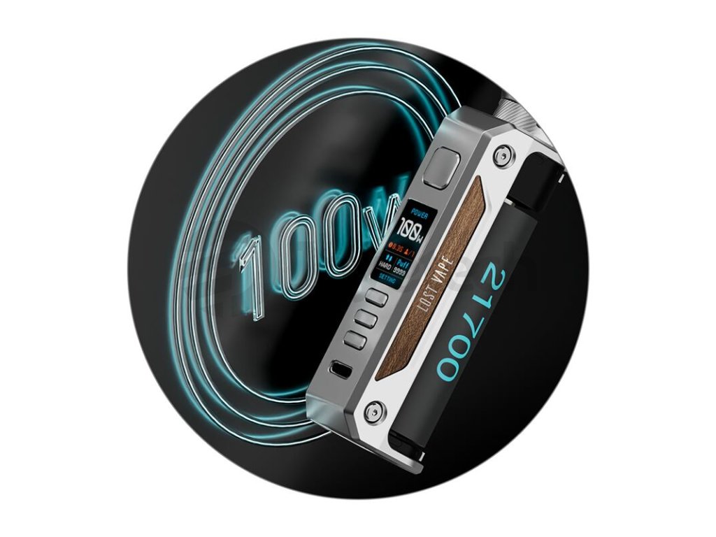 Díky pohonu na externí baterii dosahuje maximální výkon modu Thelema Solo až ohromujících 100 W. Samozřejmostí je jeho regulace v rozmezí 5 - 100 W pomocí regulačních tlačítek na předním panelu. Výkon a další parametry si tak snadno přizpůsobíte svým potřebám během několika málo vteřin. S tímto výkonem si budou s modem skvěle rozumět příznivci přímého potahování, díky široké nabídce režimů však osloví také milovníky MTL.