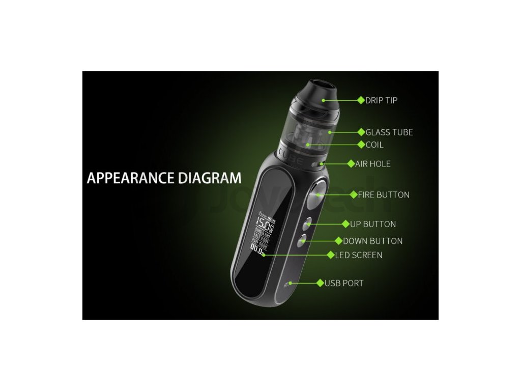Není určeno pro náplně obsahující nikotin! Firma OBS představuje dokonale zpracovaný grip Cube s integrovanou baterií o kapacitě 3000mAh a nastavitelným výkonem až 80W. Ergonomické tělo zdobí 0,96 palcový displej, který umožňuje jednoduché nastavení hodnot a zobrazuje všechny potřebné informace. Mezi jeho další přednosti patří ochrana proti zkratu, přehřátí a podbití. Výrobce tento grip osadil clearomizerem Cube, který je dodáván s oblíbenou mesh žhavicí hlavou o odporu 0,2ohm a klasickou M6. Využívá systém horního plnění - po odšroubování vrchní části plníte liquid otvorem přímo do těla clearomizeru o objemu 4ml. Celý clearomizer je plně rozebíratelný = snadná údržba. Regulace přívodu vzduchu pro nastavení optimální kouřivosti se nachází ve spodní části.