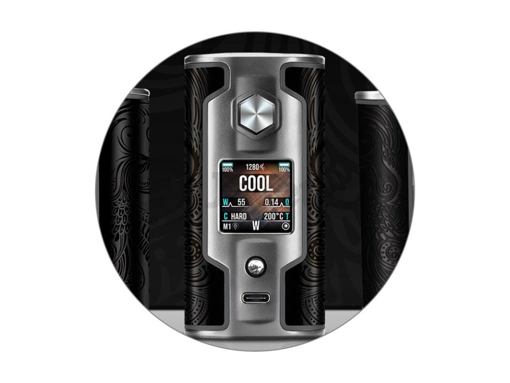 Největším upgradem je však samotný čip zařízení. V těle se nachází voděodolný čipset YiHi SX750 pro detailní a pokročilé nastavení všech parametrů. Čip nabídne řadu výstupních režimů, perfektní bezpečnostní ochrany a možnost připojení modu k wi-fi pro budoucí bezdrátový upgrade firmwaru pomocí mobilního telefonu. Z režimů se můžete těšit na režim výkonu v rozsahu 10 - 200 W se širokými možnostmi nastavení předžhavení, dále potom na režim Smart Boost pro efektivní nažhavení spirálky při jakékoliv teplotě v okolí, nebo na pokročilé možnosti teplotních režimů díky 4. generaci teplotní kontroly. Na modu si můžete také ukládat jednotlivé přednastavené profily, nebo upravovat barvu písma, tapetu obrazovky, jas displeje, nebo jas podsvícení zadního panelu. Díky těmto rozsáhlým možnostem nastavení si svůj mod upravíte přesně podle svých představ, abyste dosáhli kýženého výsledného potahu, jenž vám bude vyhovovat do nejmenšího detailu. SXmini G Class V2 je synonymem luxusu ve světě vapingu a hravě splní požadavky i těch nejnáročnějších vaperů.