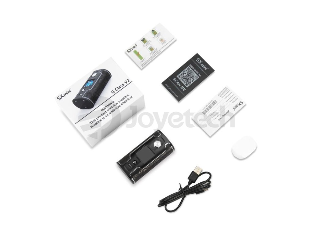 Mod SXmini G Class V2 láká nejen na pokročilé uživatelské funkce, ale v prvé řadě na excelentní a nádherný design. Tělo je vyrobeno z kombinace kovových slitin, jmenovitě potom ze zinkové slitiny a hliníkové slitiny. Všechny části modu jsou do detailu vybroušené a všechny součásti na sebe perfektně doléhají. Samozřejmostí jsou také co nejmenší rozměry 94 x 47,7 x 34,3 mm pro pohodlné užívání. Mod nabídne také populární zaoblené hrany pro perfektní ergonomii během užívání.