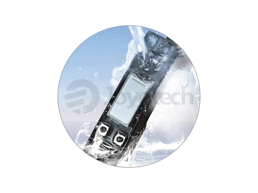 Mod Gaur-18 je opatřen voděodolným čipsetem a vybaven zesílenou konstrukcí těla modu. V případě, že by vám například na mod natekl e-liquid, nebo voda, jednoduše vyjmete baterie a opláchnete panel pod vodou. Samotná základní deska zařízení je chráněna speciálním lepidlem, které je voděodolné. Mod se tak skvěle hodí i do ztížených pracovních podmínek, nebo pro chvíle turistiky, nebudete se moci obávat ani prudkého deště během výletu.