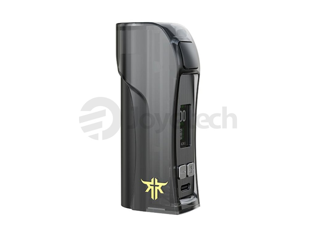 Ve spodní části modu se nachází uzávěr pro slot baterie, mod pracuje s jednou baterií typu 21700, lze však používat také standardní baterie 18650 díky přiloženému adaptéru. Díky pohonu na baterii 21700 můžete mod osadit vysokokapacitním článkem pro potřeby DL, nebo MTL potahu a pro dlouhou výdrž celého modu. Baterii budete moci pohodlně dobíjet přímo v modu díky rozhraní USB-C.
