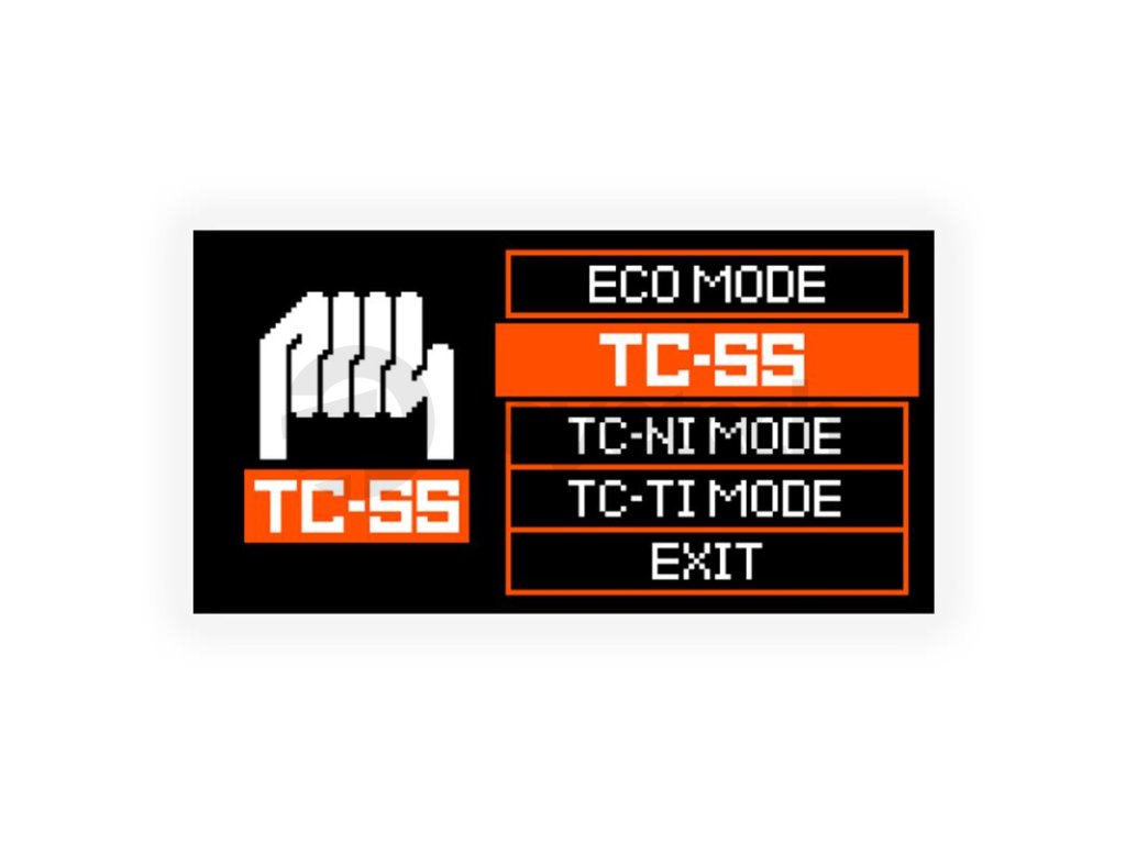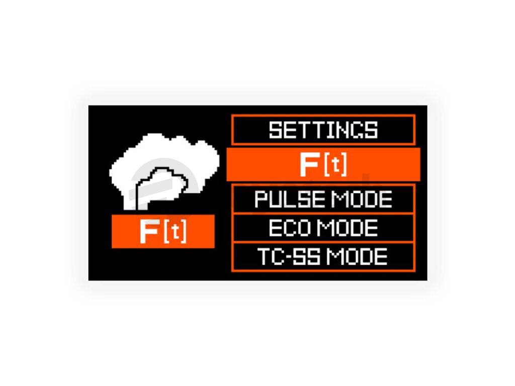 Ovládací panel s displejem v přední části umožňuje hladké a rychlé nastavení všech parametrů. U modu navíc máte na výběr ze široké nabídky výstupních režimů. Pro milovníky režimu výkonu je připraven režim F(t) pro zisk co nejlepší chuti, případně subrežim SMART pro automatické doporučení vhodného výkonu. Pokročilejší uživatelé se mohou těšit na režimy PULSE, nebo TC režimy pro niklové, titanové a nerezové spirálky.