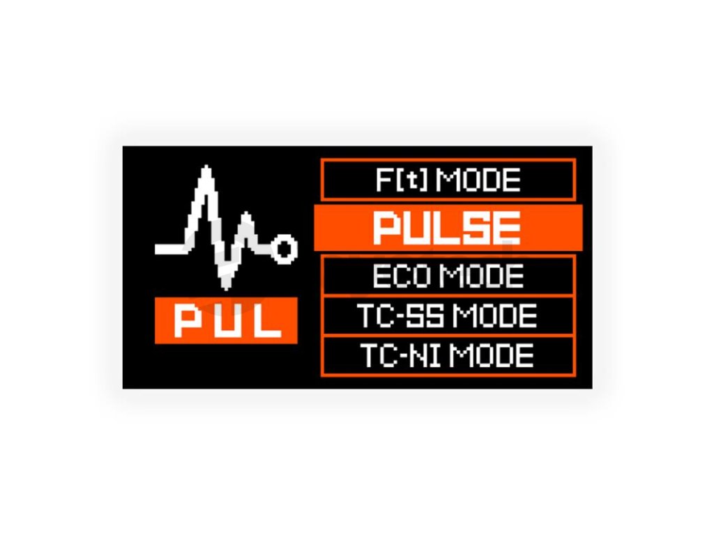 Výstupní režimy: F(t), PULSE, ECO, TC (SS, Ni, Ti), SMART