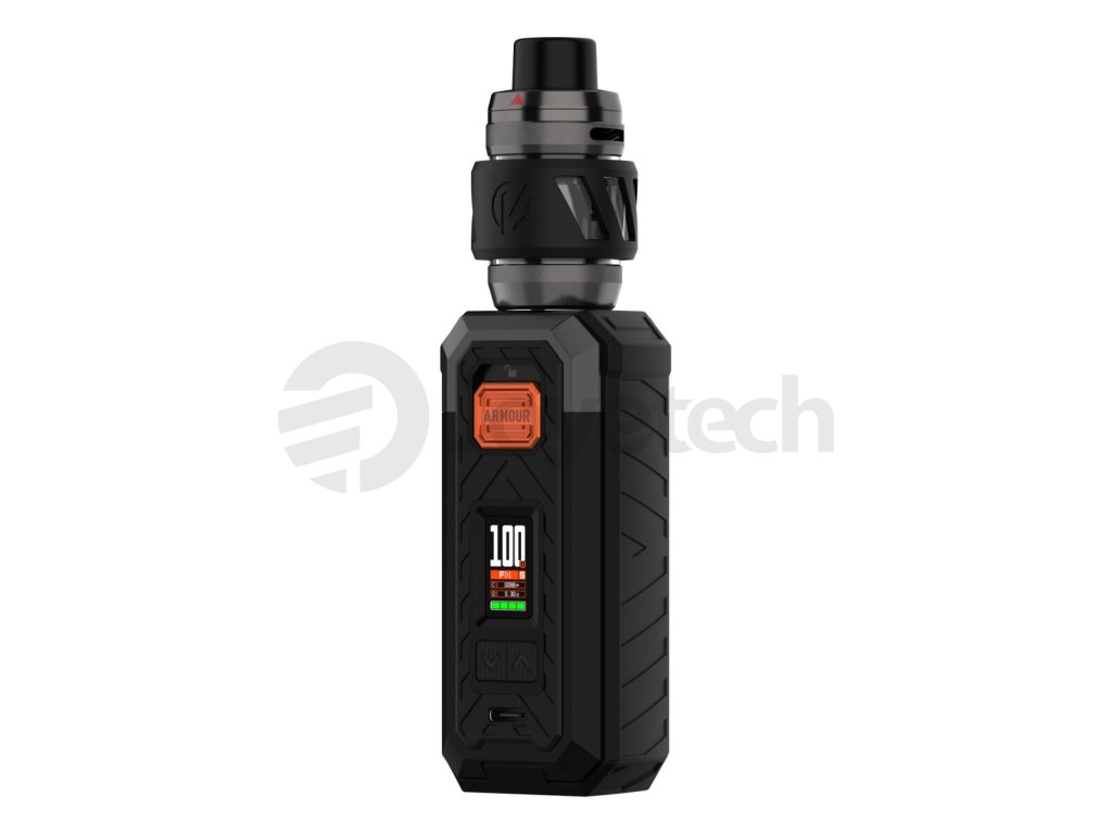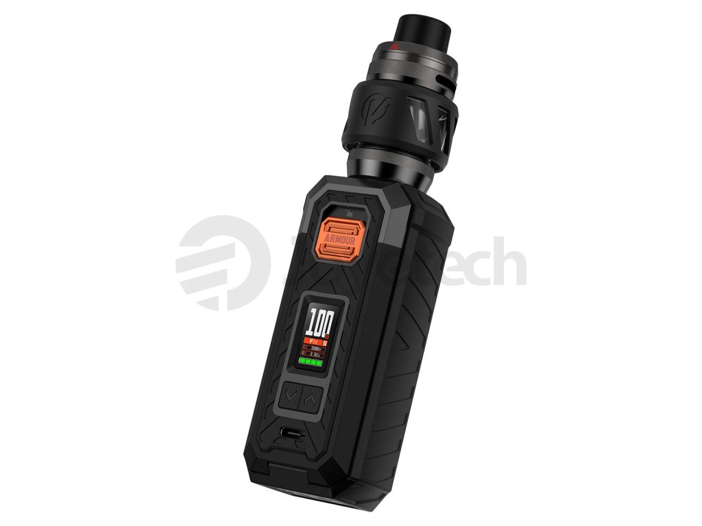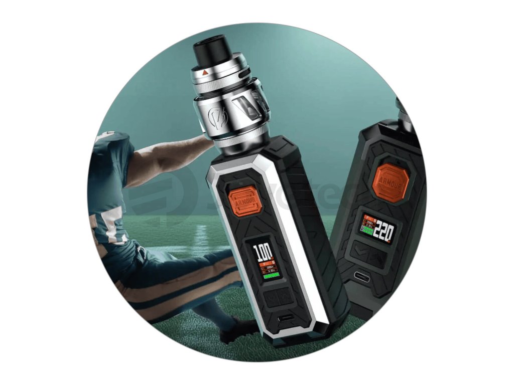 Dominantou zařízení je potom přední ovládací panel s unikátním Uni-Lock spínacím tlačítkem, jehož posouváním ho můžete jednoduše zajistit před nechtěným sepnutím při přenášení, nebo ho opětovně odemknout a žhavit. Na panelu se nachází také kompaktní displej se všemi důležitými parametry a přehledným rozhraním. Mod pracuje s řadou výstupních režimů, za zmínku stojí například úsporný ECO režim, nebo teplotní režimy pro niklové, titanové a nerezové spirálky. Nastavení je nesmírně snadné a rychlé. Ve vrchní části je mod opatřen závitem typu 510. V kompletní sadě a upgradovaném balení se potom nachází moderní DL atomizér Vaporesso iTank T s objemem 6 ml, horním systémem plnění a upgradovanou horní regulací airflow. Jeho součástí jsou také dvě žhavící hlavy ze série GTi Mesh s odpory 0.2 ohm a 0.4 ohm. Mody ze série Vaporesso Armour jsou odolné soupravy pro náročné a pro všechny, kdo milují robustní a bytelná zařízení se solidními rozměry a kvalitní konstrukcí.