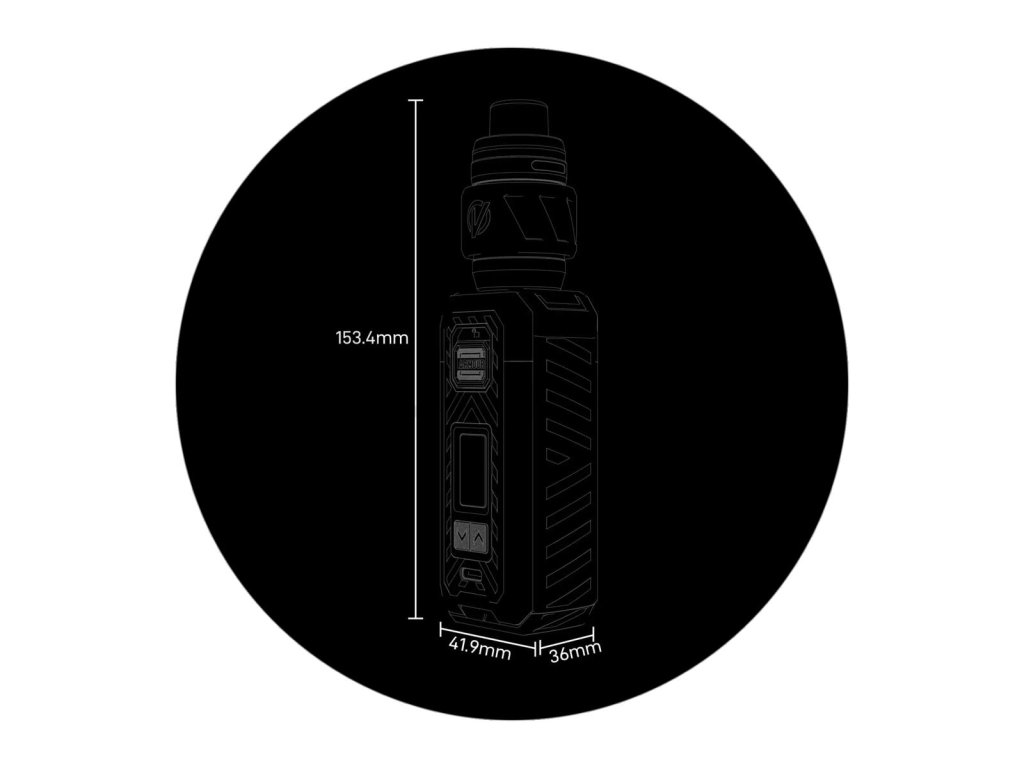 Tradiční box mod zpracování, solidní konstrukce těla a celkové rozměry kitu 153.4 x 41.9 x 36 mm zaručí komfortní stisk v ruce a příjemné každodenní používání. Design modu je do detailu promyšlený a nabídne uživatelům mimořádný vaperský zážitek díky jemnému povrchu na dotyk a příjemně zkoseným křivkám těla.