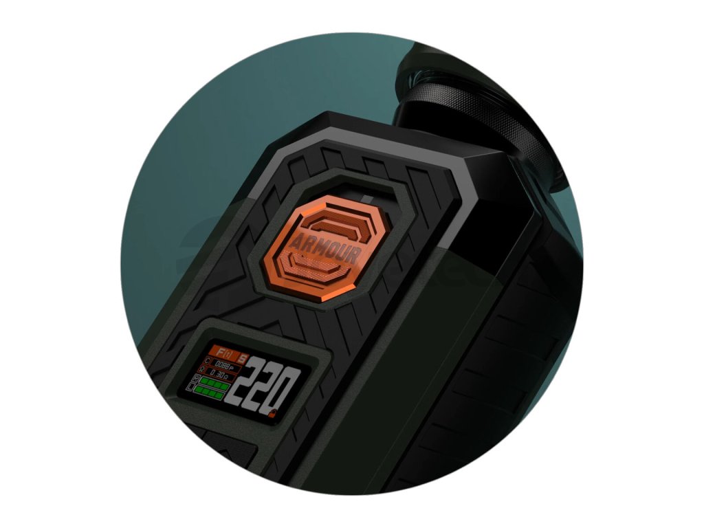 Světoznámý výrobce Vaporesso se tentokrát zaměřil na milovníky velkých gripů a outdoorové odolné estetiky. Přináší tak hned dva modely s názvy Vaporesso Armour S a Armour Max. Grip Vaporesso Armour S Kit je ergonomicky vyladěné robustní zařízení, jehož hlavní předností je zejména netradičně zpracovaná konstrukce a prvotřídní elektronika v těle, která umožňuje používání gripu s celou řadou výstupních režimů. Robustní konstrukce zařízení je vyrobena z mimořádně odolného TPU materiálu, který zesiluje celkovou odolnost modu a posouvá ji daleko nad běžné kovové a plastové gripy. Ve spodní části modu Armour S se nachází slot pro vložení jedné baterie typu 21700, nebo 18650 s pomocí přiložené redukce. Mod Armour v jednobaterkové verzi nabídne strhující výstupní výkon, jenž dosahuje 100W. Baterii si můžete pohodlně dobíjet přímo v modu prostřednictvím portu USB-C s podporou 2A nabíjení.