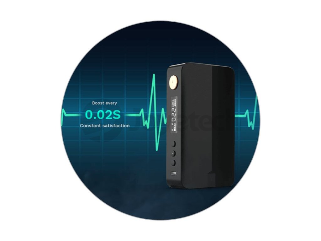 V těle modu se nachází vynikající čip AXON, který se postará o stabilní výkon a bezpečné používání. Díky čipu je zajištěno dodání nastaveného výkonu konstantně každé 0,02 vteřiny potahu. V průběhu potahu se tak můžete těšit na rovnoměrný výkon a vynikající podání chuti z vlastního atomizéru. Díky čipu AXON se také můžete těšit na celou řadu výstupních režimů.