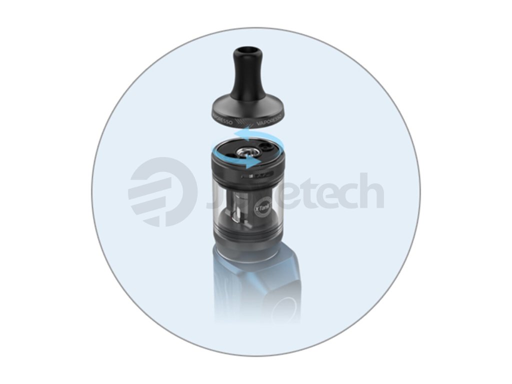 Vaporesso XTank T se pyšní solidním objemem 3ml a praktickou funkcí horního doplňování. Stačí jen pootočit horním top capem a začít plnit. Celý proces zabere sotva pár vteřin, vy se už pak můžete následně opětovně věnovat vapování.