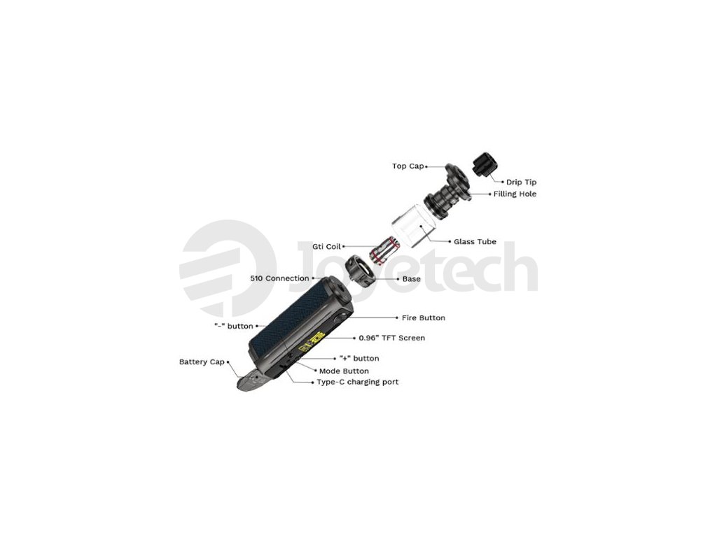Tělo modu je poháněno oblíbeným a kvalitním čipem AXON, který se postará o perfektní výsledky při vapování. Díky čipu se můžete těšit hned na několik výstupních režimů. Nesmí chybět inteligentní režim Smart VM, který doporučí výkon dle připojeného tělíska. K dispozici je také režim F(t) Mode, který se postará o co nejlepší chuťové podání, režim Pulse pro dodání konstantního výkonu během potahu, nebo DIY režimy, jako jsou VV a Bypass. Čip rovněž umožňuje dobíjení baterie přímo v modu díky portu USB-C proudem až 2A. Nový clearomizér iTank nabídne objem 5 ml. Je kompatibilní s tělísky GTi Mesh. V základním balení na vás čekají tělíska s odpory 0,2 ohm a 0,4 ohm pro přímé potahování do plic. Clearomizér nabídne jednoduchou konstrukci pro co nejsnazší údržbu. Nesmí chybět jednoduchý systém vrchního plnění, nebo spodní regulace airflow. Vaporesso Target 100 Kit je ve všech směrech vynikající sada, kterou si snadno oblíbí jak pokročilí uživatelé, tak také začátečníci.