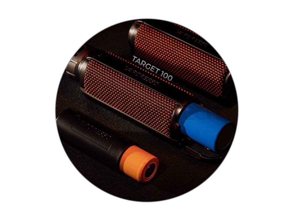 Mod Vaporesso Target 100 nabídne bytelnou konstrukci a speciální povrchovou úpravu kolem těla modu. Tělo je potaženo unikátní tkaninou, která zajišťuje pohodlné držení v ruce a zároveň efektivně odpuzuje kapky vody. Působí také jako jedinečný designový doplněk celého modu. Mod navíd disponuje perfektní ergonomií, takže se příjemně používá a díky povrchové úpravě se nemusíte obávat možného vyklouznutí z ruky.