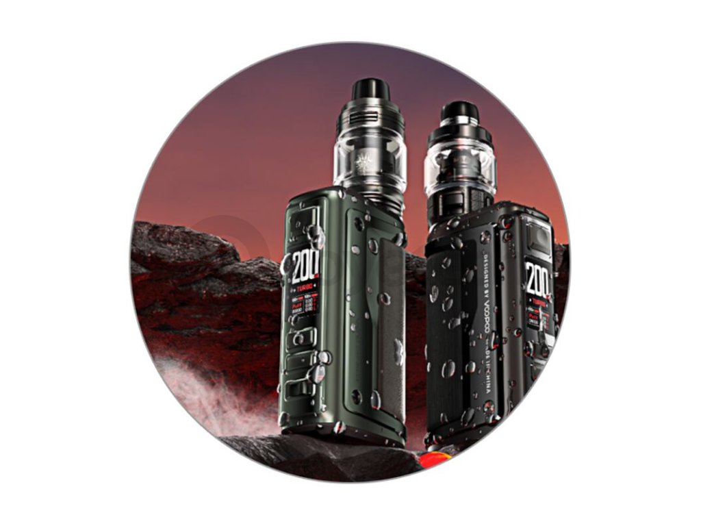 Druhá generace populárního modu VooPoo Argus GT s jednoduchým označením Argus GT II nabídne řadu vylepšení pro ještě snazší nastavení a zároveň mnohem širší možnosti využití díky podpoře TC režimů a novému režimu TURBO. Těšit se můžete také na přepracovaný design a upgradovanou verzi čipu GENE.TT, který podporuje výstupní výkon až do 200 W. Kovové tělo ze zinkové slitiny je opatřeno koženým panelem a certifikací IP68, mod je proto nesmírně odolný vůči vnějším vlivům, robustní a stylový. Rozměry samotného modu činí 90 x 54 x 29 mm. Do jeho těla je možné nainstalovat až dvě baterie typu 18650 pro zisk maximálního výstupního výkonu a rychlého náběhu žhavení. Baterie bude možné dobíjet přímo v modu díky podpoře rychlého standardu nabíjení skrz USB-C port proudem až 3 A. V jádru modu se nachází integrovaný čip GENE.TT 2.0 pro perfektní výsledky při žhavení, snadné uživatelské nastavení a velký výběr výstupních režimů.