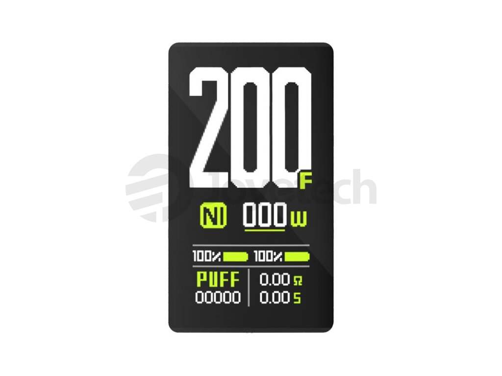 Tělo modu nabídne slot pro vložení dvou baterií typu 18650, díky pohonu na dvě baterie lze dosáhnout ohromujícího výstupního výkonu a perfektního náběhu žhavení. Mod pracuje s výkonem až 200 W, čímž dodá vždy dostatek husté a chutné páry i tem nejnáročnějším vaperům. Baterie nejsou součástí balení a je nutné dokoupit je samostatně, výhodou pohonu na externí baterie je to, že můžete v modu používat své oblíbené baterie a kdykoliv si je vyměnit za plně nabité.