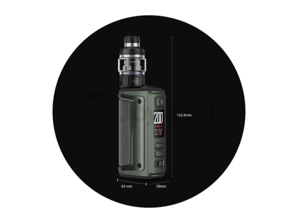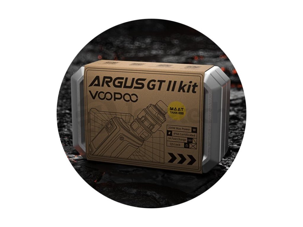 Druhá generace populárního modu VooPoo Argus GT s jednoduchým označením Argus GT II nabídne řadu vylepšení pro ještě snazší nastavení a zároveň mnohem širší možnosti využití díky podpoře TC režimů a novému režimu TURBO. Těšit se můžete také na přepracovaný design a upgradovanou verzi čipu GENE.TT, který podporuje výstupní výkon až do 200 W. Kovové tělo ze zinkové slitiny je opatřeno koženým panelem a certifikací IP68, mod je proto nesmírně odolný vůči vnějším vlivům, robustní a stylový. Rozměry samotného modu činí 90 x 54 x 29 mm. Do jeho těla je možné nainstalovat až dvě baterie typu 18650 pro zisk maximálního výstupního výkonu a rychlého náběhu žhavení. Baterie bude možné dobíjet přímo v modu díky podpoře rychlého standardu nabíjení skrz USB-C port proudem až 3 A. V jádru modu se nachází integrovaný čip GENE.TT 2.0 pro perfektní výsledky při žhavení, snadné uživatelské nastavení a velký výběr výstupních režimů.