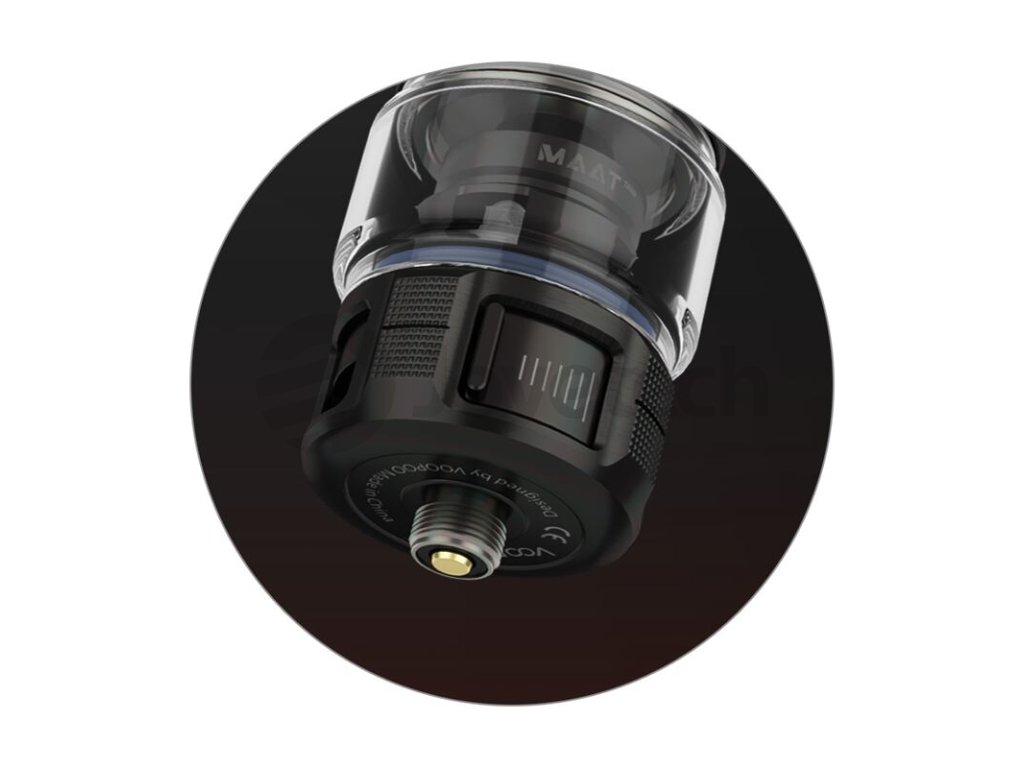 Součástí kompletního balení je oblíbený clearomizér Maat New Tank. Jedná se o přepracovanou a upgradovanou verzi populárního Maat Tanku pro přímé potahování do plic. Clearomizér nabídne obrovský objem 6,5 ml, inovativní vrchní plnění a unikátní systém spodního airflow. Clearomizér se postará o produkci obrovského množství husté a chutné páry a nabídne zcela mimořádný chuťový požitek.