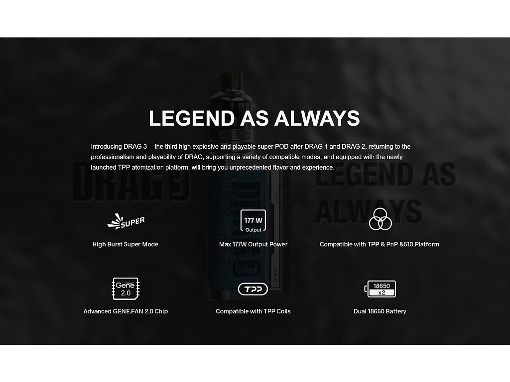 VOOPOO DRAG 3 - 177W - Full Grip s TPP Pod Tank (Classic)