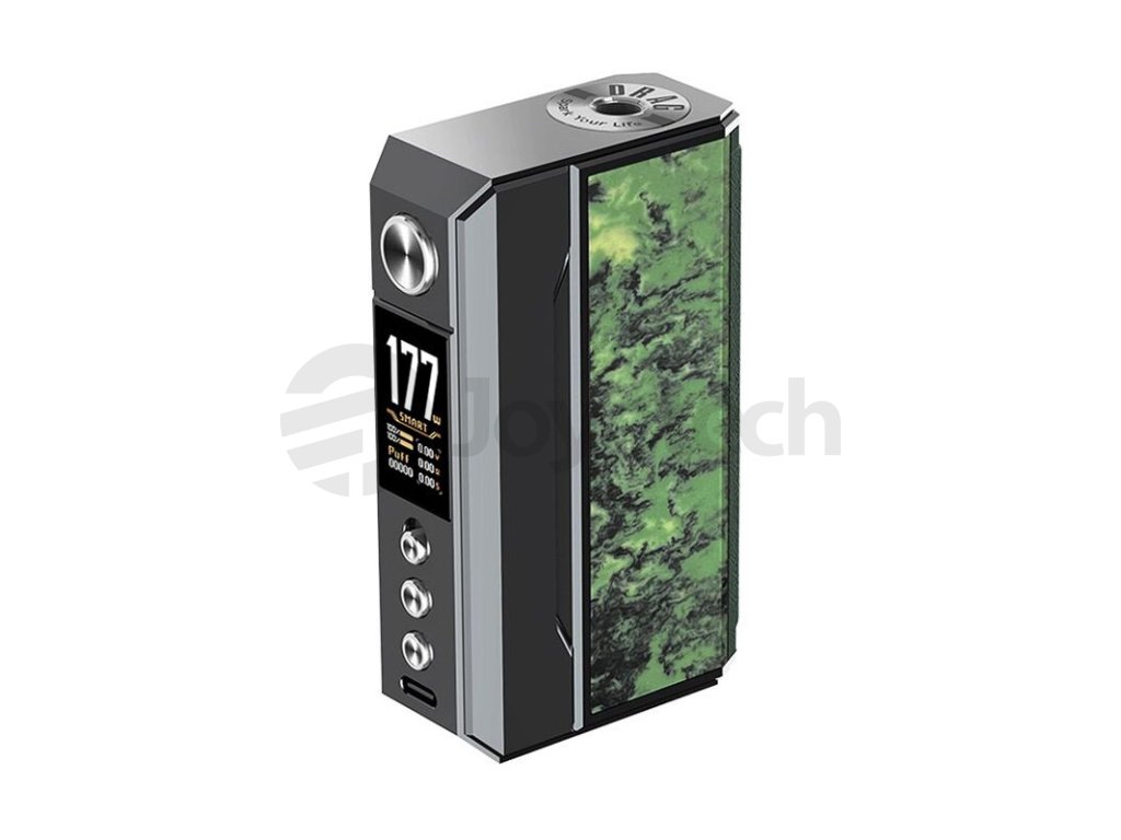 VooPoo Drag 4 Mod je již čtvrtou generací vlajkové lodě Drag, série pokročilých gripů výrobce VooPoo. Na pomyslný vrchol nabídky výrobce ho potom řadí celá řada prvků, mezi nejvýznamnějšími lze jmenovat hlavně kvalitní čip GENE.TT 2.0, podporu extrémně rychlého nabíjení 3A, nebo široký výběr režimů a možnost konfigurace manuálního QS zámku. Při prvním seznámení s gripem Drag 4 vás však zaujme zejména jeho design. Tradiční box mod tělo s rozměry 89 x 52.4 x 25.4 mm je vyrobeno z kombinace zinkové slitiny a kůže na zadním panelu. Boční panely potom zdobí tři rozdílné materiály dle barevného zpracování - resin, palisandrové dřevo, nebo ořechové dřevo. Tělo modu s překrásným a luxusním designem ukrývá slot pro vložení dvou baterií typu 18650, které se postarají o extrémní výkon, jenž dosahuje až 177 W. Baterie můžete pohodlně dobíjet přímo v modu prostřednictvím 5V / 3A USB-C portu v přední části.