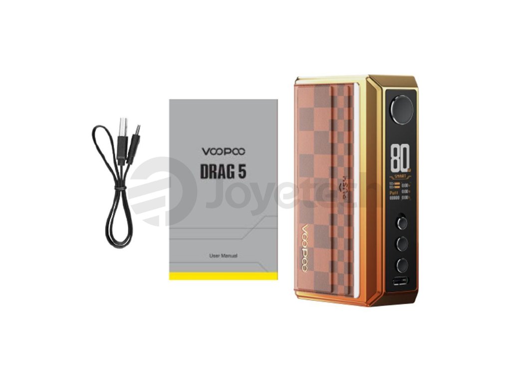 VooPoo Drag 5 navazuje na designový úspěch svých předchůdců a představuje se opět v krásně zpracovaném, luxusním a stylovém těle s jedinečnými barevnými variantami a moderními vzory. Nádherně zpracovaný mod nabídne tradiční box konstrukci a všechny oblíbené prvky, které můžete znát z minulých modelů. Zejména potom krásný displej a ergonomicky umístěné tlačítko na předním ovládacím panelu. Drag 5 je ukázkou precizního návrhářství výrobce VooPoo.