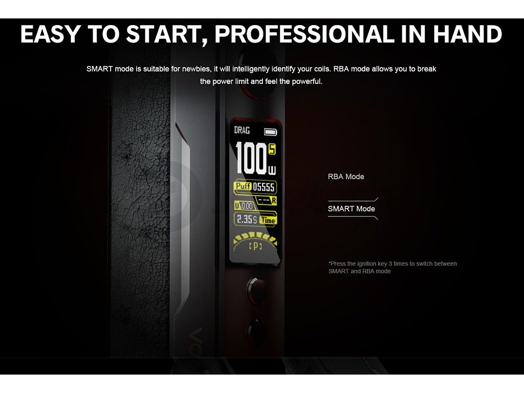 Špičkový nástupce velmi oblíbeného Pod Gripu Drag X, tentoktát s výkonem až 100W, tělo ze zinkové slitiny, na baterie 18650, nebo 21700, rychlé USB-C nabíjení, čip GENE.FAN 2.0 s rychlostí žhavení 0,001s, režimy Smart, RBA, Score Rating. Přehledný barevný TFT displej. Možno použít s jakýmkoliv Clearomizerem se závitem 510, případně s továními tanky TPP a PnP s 510 základnou.