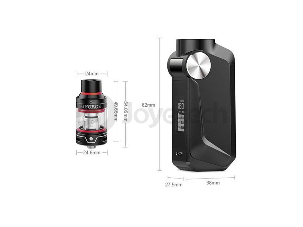 Parametry produktu: Mod VooPoo Mojo: Rozměry: 82 x 27,5 x 38 mmVýstupní výkon: 5 - 88 W Baterie: integrovaná 2600 mAh Dostupné režimy: VW, TC (Ni, Ti, SS)Podporovaný odpor: VW režim: 0,05 - 3,0 ohm TC režim: 0,05 - 1,0 ohmNabíjení: externě nebo USB Nastavení teploty 100 - 315 °C (200 - 600 °F) Výstupní napětí: 0 - 8,5 V Materiál: slitina zinku Závit: 510 Clearomizér UFORCE: Délka: 54 mm Průmer: 24,6 mm Objem: 3,5 ml Materiál: nerezová ocel + borosilikátové sklo Závit: 510 Tento výrobek není určen pro náplně obsahující nikotin. |