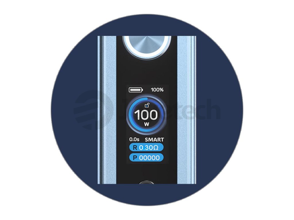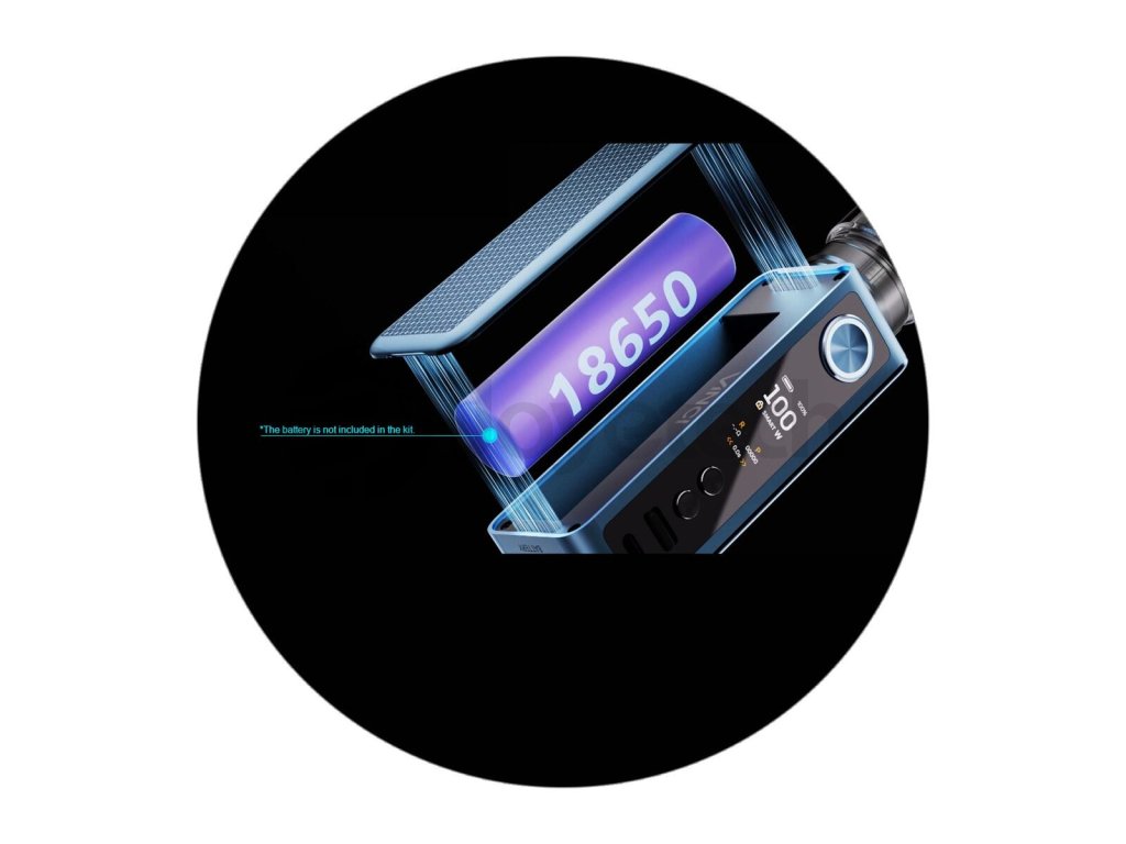 Tělo modu ukrývá slot pro vlastní externí baterii typu 18650. Po vložení vlastní baterie můžete začít naplno využívat všechny funkce modu. Největší předností je potom podpora obrovského výstupního výkonu až 100W s plnohodnotnou možností regulace, velice snadno a rychle si tak upravíte výkon podle potřeby a můžete si vychutnávat svůj oblíbený styl potahu.