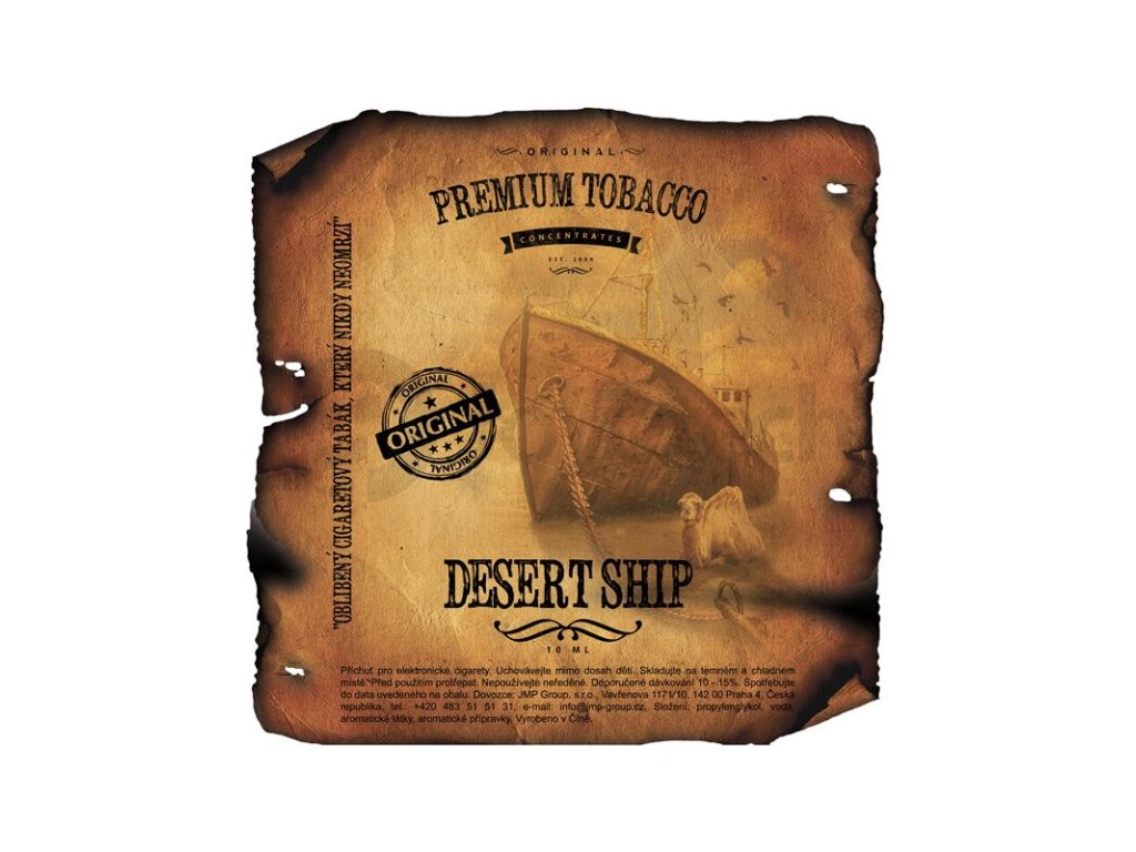 Desert Ship je označení pro příchuť, která se může pyšnit snad nejvěrnější chutí cigaretového tabáku. Nejlepší tabáky jsou ty americké a právě takový je i Desert Ship. Nabídne věrnou chuť, ale přesto tak lehkou, že vás neomrzí ani po dlouhodobém vapování.