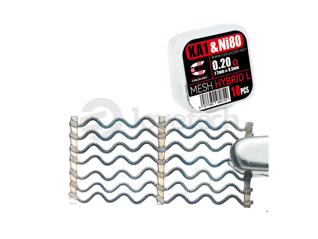 Coilology Mesh Hybrid L je vysoce kvalitní mesh pletivo renomovaného výrobce na poli DIY vapingu Coilology. V provedení Hybrid L najdete hybridní typ mesh pletiva kombinující dva materiály - Kanthal KA1 a Nichrom Ni80. Díky své konstrukci nabídne perfektně rychlý náběh žhavení, dlouhou životnost a perfektní výsledky při vapování. Odpor jednoho plátku mesh pletiva se pohybuje okolo 0.2 ohm. Pletivo je možné užívat se standardním režimem výkonu nebo výstupního napětí. Nepodporuje použití v TC režimech.