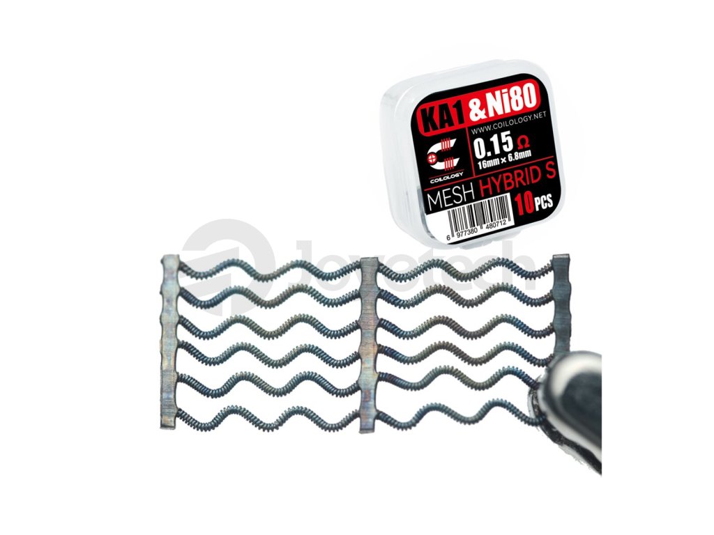 Coilology Mesh Hybrid S je vysoce kvalitní mesh pletivo renomovaného výrobce na poli DIY vapingu Coilology. V provedení Hybrid S najdete hybridní typ mesh pletiva kombinující dva materiály - Kanthal KA1 a Nichrom Ni80. Díky své konstrukci nabídne perfektně rychlý náběh žhavení, dlouhou životnost a perfektní výsledky při vapování. Odpor jednoho plátku mesh pletiva se pohybuje okolo 0.15 ohm. Pletivo je možné užívat se standardním režimem výkonu nebo výstupního napětí. Nepodporuje použití v TC režimech.