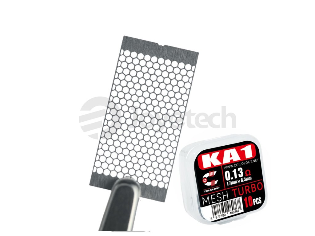 Coilology Mesh TURBO je vysoce kvalitní mesh pletivo renomovaného výrobce na poli DIY vapingu Coilology. V provedení TURBO najdete tradiční typ mesh pletiva z Kanthalu KA1. Díky své konstrukci nabídne perfektně rychlý náběh žhavení, dlouhou životnost a perfektní výsledky při vapování. Odpor jednoho plátku mesh pletiva se pohybuje okolo 0.13 ohm. Pletivo je možné užívat se standardním režimem výkonu nebo výstupního napětí. Nepodporuje použití v TC režimech.