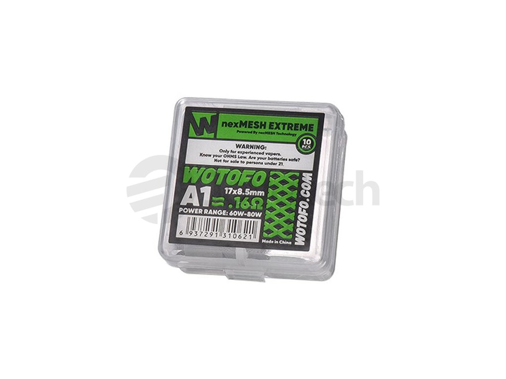 Vysoce kvalitní mesh pletivo výrobce Wotofo s názvem NexMESH Extreme se vyznačuje specifickým zpracováním konstrukce, která připomíná tkaná vlákna. Díky speciálnímu opletu nabídne větší odpařovací plochu s výraznější savostí pro odpaření obrovského množství e-liquidu během potahu. Pletivo NexMESH Extreme je vhodné zejména pro cloudchasing a extrémně vzdušné přímé potahování. Odpor pletiva se pohybuje okolo 0,16 Ω. Pletivo je vyrobeno z kanthalu A1, který dodá rychlý náběh žhavení a nezkreslenou, výraznou a plnou chuť. Pletivo je možné užívat se standardním režimem výkonu, nebo výstupního napětí. Nepodporuje použití v