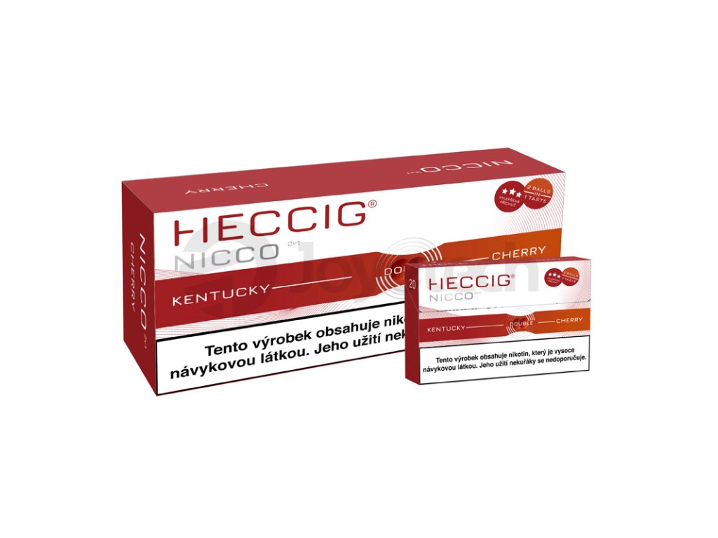 Nová řada HEECIG 2v1 Vychutnejte si příchutí třešní a kapkou čerstvé máty, tentokrát v kombinaci hned dvou praskacích kapslí, spojených s chutí Kentucky Tobacco. HECCIG© NICCO 2. generace obsahují hned dvě práskací kuličky, díky nimž je příchuť intenzivnější a déle trvající. Pokud kuličky zůstanou neporušené, náplně nabídnou aroma Kentucky Tobacco, které je základem všech náplní HECCIG© NICCO a HECCIG© ZERO 2. generace.