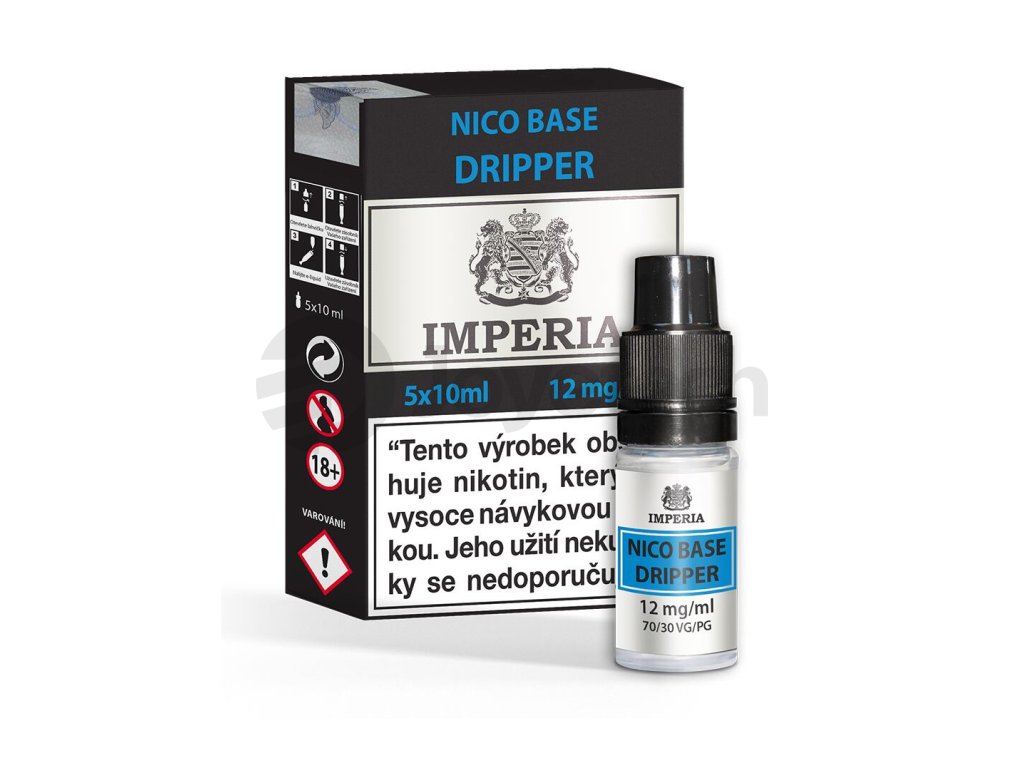 Imperia Dripper je báze s vysokým obsahem glycerolu (VG 70%) a nízkým procentem propylenglykolu (PG 30%). Díky speciálnímu poměru vytváří velké množství husté jemné páry a je vhodná především pro cloud-chasing a dokapávací RDA atomizéry.