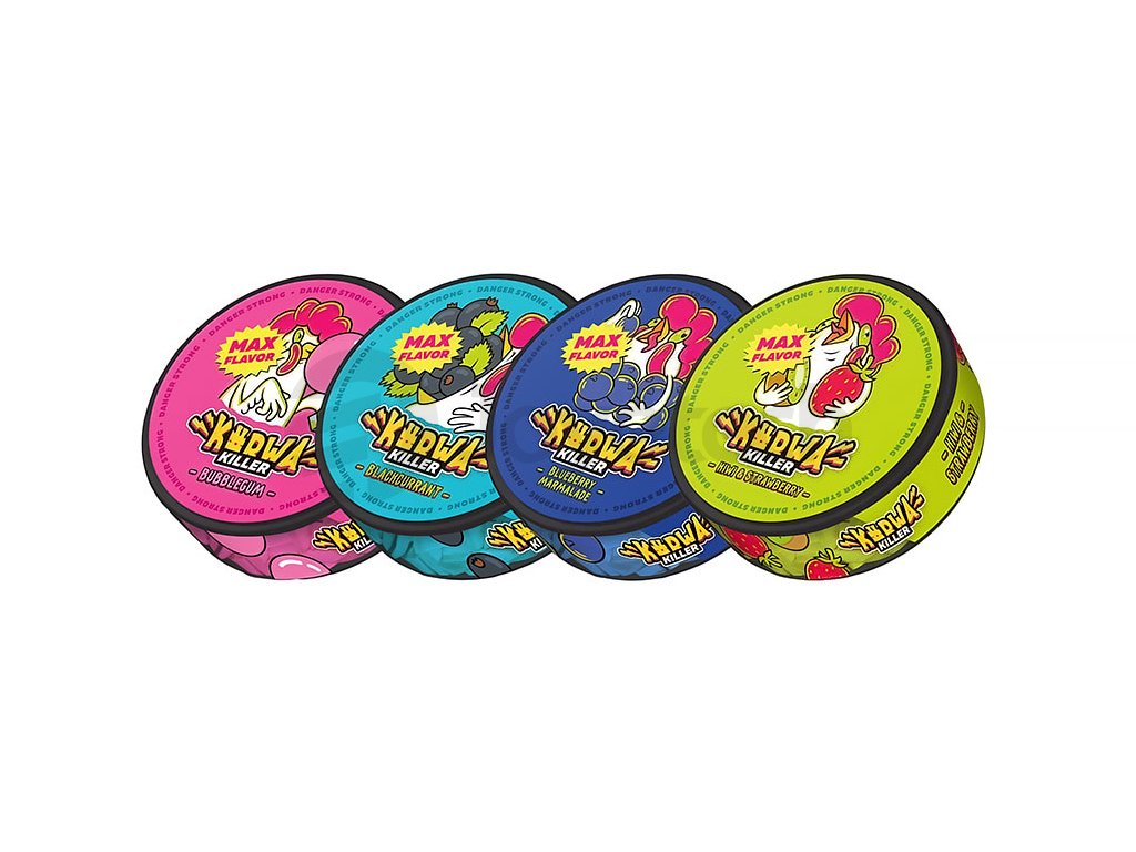 Dechberoucí chuť sladké jahody a exotického kiwi. Další edice nikotinových sáčků ''KILLER'' od výrobce Kurwa, která je momentálně dostupná hned ve čtyřech nejžádanějších příchutích. Samotný obsah nikotinu je v tomto případě stejný jako u edice Fatality, at o 46,9 mg /g (32,8 mg /sáček). V balení se nachází 20 sáčků v diskrétní slim velikosti. Tento formát sáčků patří mezi nejoblíbenější mezi všemi značkami. Tato edice je kvůli poměrně vysokému obsahu nikotinu vhodná především pro zkušené uživatele, případně silné kuřáky. Výrobce Kurwa.