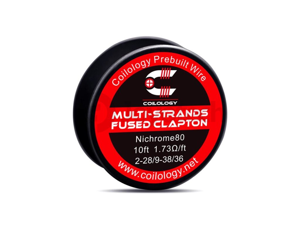 Coilology Multi-Strands Fused Clapton Ni80 je vysoce kvalitní odporový drát renomovaného výrobce Coilology. Drát je vhodný pro výrobu spirálek určených k DL vapingu. Drát je vyrobený z nichromu, přičemž jeho tvoří hned několik drátů v konfiguraci 2-28/9-38, po stranách jádra se tedy nachází dva dráty s průměrem 0,3 mm (28GA) a mezi těmito dráty se nachází dalších devět tenkých drátů s průměrem 0,1 mm (38GA). Celé jádro je potom omotáno tenkým nichromovým drátem s průměrem 0,13 mm (36GA).. Drát je určený pro používání v režimu výkonu. Nelze ho použít pro teplotní režimy. Odporový drát v provedení Multi-Strands je vhodný pro cloudchasing a pro použití s extrémními výkony.