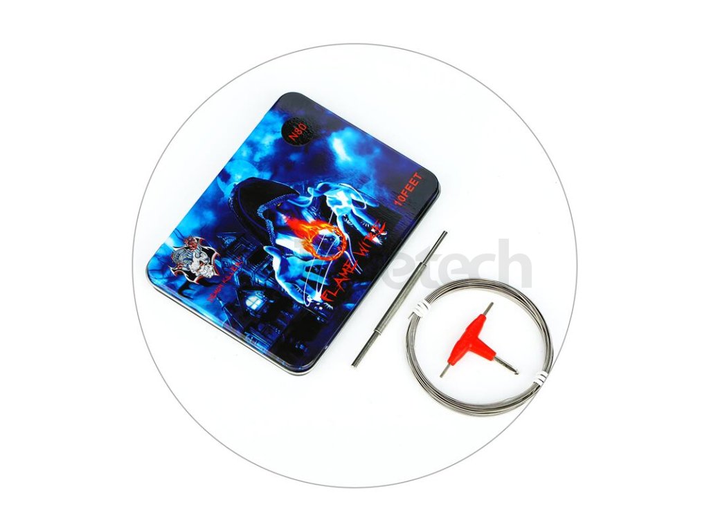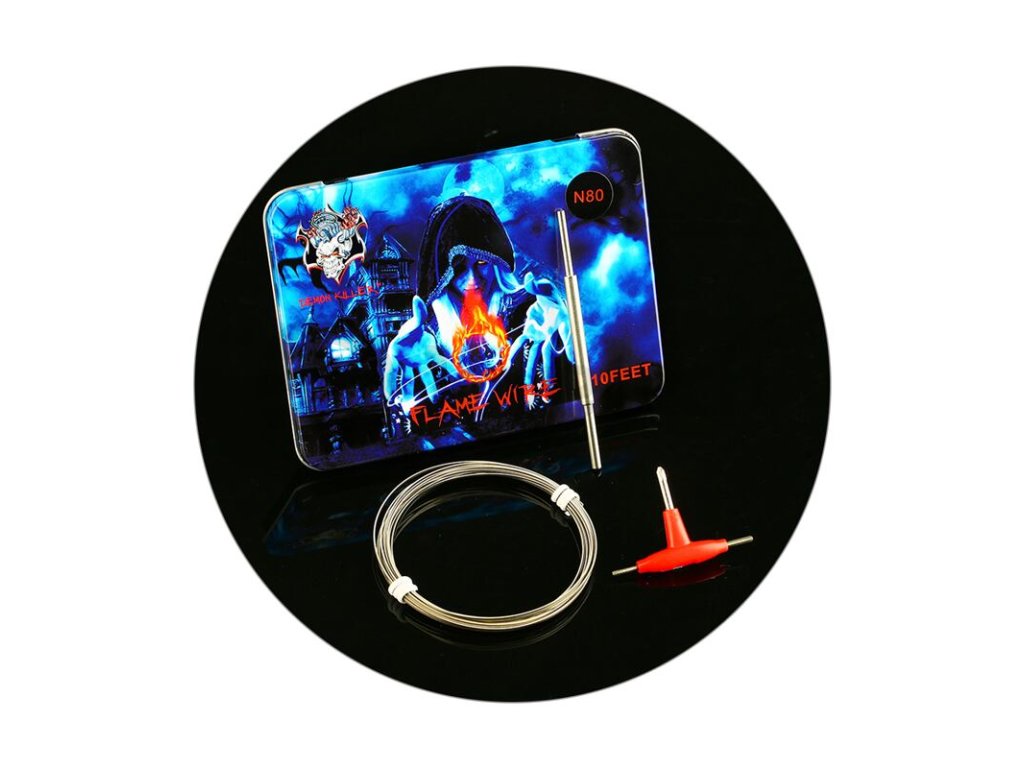 Sada odporového drátu a nástrojů pro DIY od výrobce Demon Killer se zaměřuje zejména na milovníky nízkoodporového vapingu. V sadě se nachází odporový drát Demon Killer Flame Wire z nichromu (Ni80). Jádro drátu tvoří tři menší dráty s průměry 28GA (0,3 mm), které jsou omotány tenkým drátem s průměrem 38GA (0,1 mm). Drát je určený pro používání v režimu výkonu. Nelze ho použít pro teplotní režimy. V sadě se mimo drát nachází také praktický hrot pro tvorbu spirálek a multifunkční šroubováček pro instalaci hotových spirálek do vašeho atomizéru.