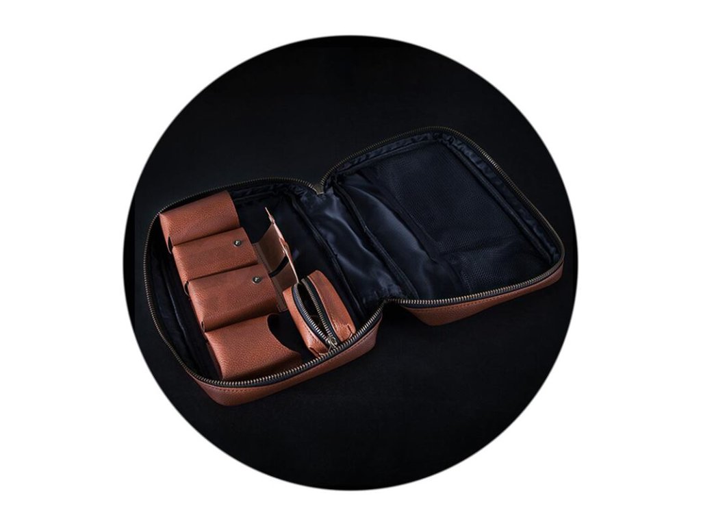 vaping. Do brašny si pohodlně uskladníte svůj mod, e-cigaretu, lahvičky s příchutěmi a další vybavení nutné pro chod vašeho stávajícího vapingového setu. Brašna je vyrobena z prvotřídní ekokůže, která dodává celé soupravě netradiční a originální vzhled. Boční část brašny zdobí logo produktu. Kapsičky uvnitř brašny jsou vyrobeny rovněž z ekokůže, která je odolná a ochrání veškeré vaše vybavení při častějším přenášení a během cestování. Brašna zároveň slouží jako stylový a krásný designový doplněk. Je k dostání v hnědé retro barvě.
