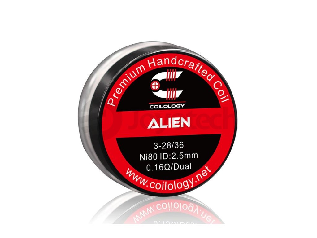 Předmotané spirálky Coilology Alien Ni80 disponují odporem 0,16 ohm. Jsou vyrobeny z nichromu. Jsou tvořeny třemi odporovými dráty s průměry 0,3 mm (28GA) v jádru, které jsou omotané tenkým nichromovým drátem s průměrem 0,13 mm (36GA). Jsou určené pro