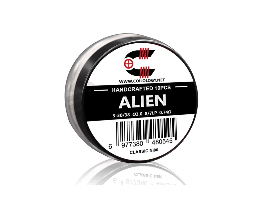 Předmotané spirálky Coilology Alien Classic jsou vysoce kvalitní spirálky určené k instalaci do DIY atomizérů. Jsou vyrobeny z Nichromu Ni80. Jedná se o provedení typu Alien. Jsou tvořeny třemi odporovými dráty, které jsou obmotané tenkým drátem. Předmotané spirálky z materiálu Ni80 lze používat v režimech výkonu, nefungují v teplotních režimech.
