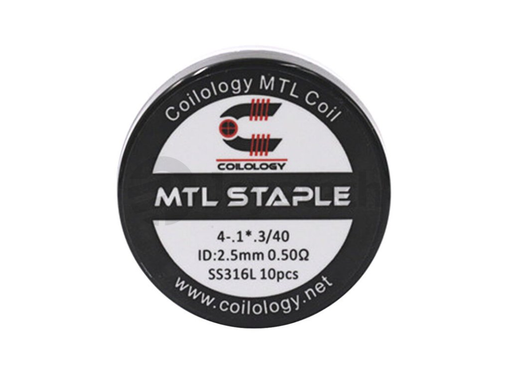 Předmotané spirálky Coilology MTL Staple SS316L disponují odporem 0,5 ohm. Jsou vyrobeny z nerezové oceli. V jádru jsou tvořeny čtyřmi odporovými dráty, které jsou omotány tenkým drátem s průměrem 0,08 mm (40GA). Jsou určené pro MTL DIY atomizéry.