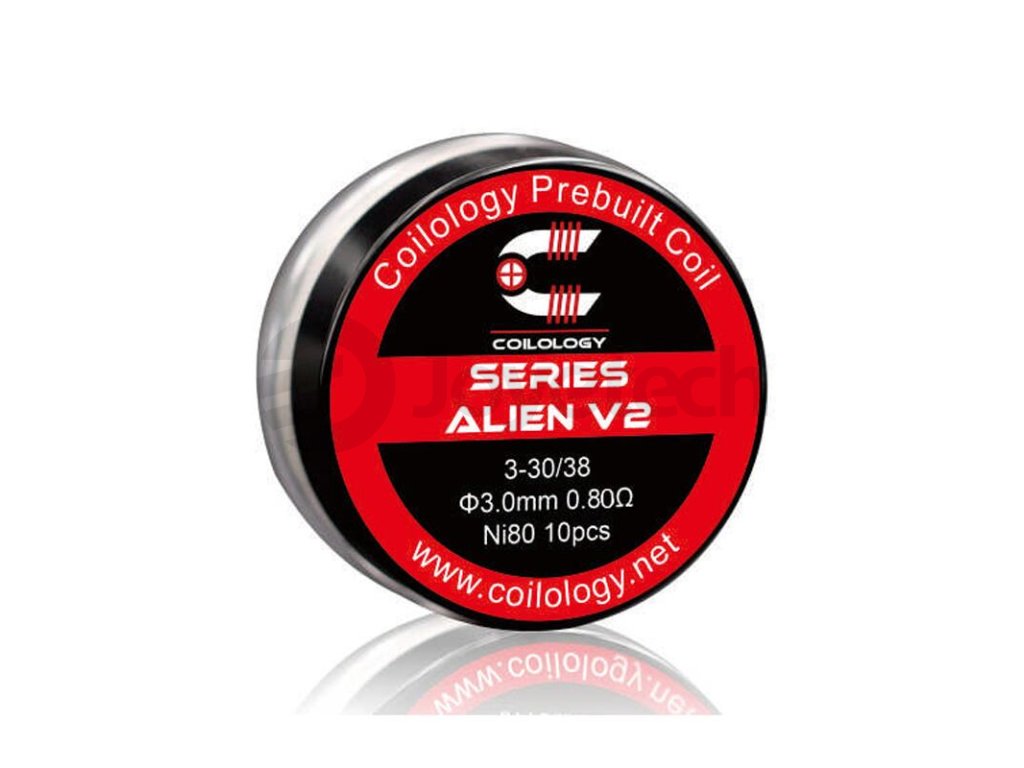 Předmotané spirálky Coilology Series Alien V2 Ni80 disponují odporem 0,8 ohm. Jsou vyrobeny z nichromu. Jsou tvořeny třemi odporovými dráty s průměrem 0,25 mm (30GA), které jsou omotané tenkým nichromovým drátem s průměrem 0,1 mm (38GA). Jsou určené pro