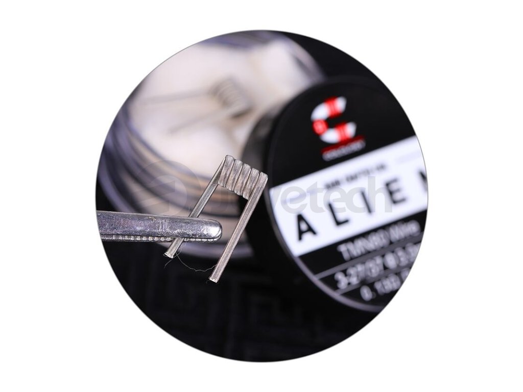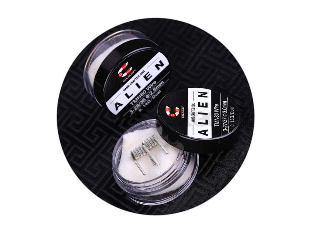 Předmotané spirálky Coilology Twisted Messes Alien Ni80 disponují odporem 0,13 ohm. Jsou vyrobeny z nichromu. Jsou tvořeny třemi odporovými dráty s průměry 0,36 mm (27GA) v jádru, které jsou omotané tenkým nichromovým drátem s průměrem 0,11 mm (37GA). Jsou určené pro