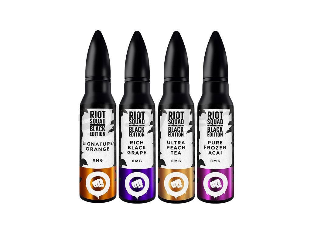 Jistě už jste ochutnali základní řadu příchutí Riot Squad z Velké Británie a přesvědčili se o jejich kvalitách všech možných aromat. Určitě nám dáte za pravdu, že příchutě jsou to opravdu skvostné. Proto si dovolujeme Vám nabídnout speciální sérii této úspěšné firmy, a to řadu Black Edition. Tato série nabízí ještě výraznější tóny vyráběných příchutí, díky kterým si požitek z vapování užijete zase v nové dimenzi. Ať už se jedná o vynikající ovocné příchutě, nápojové mixy, nebo příchutě postavené ryze na tabákovém základu, Riot Squad Vás určitě nezklame.
