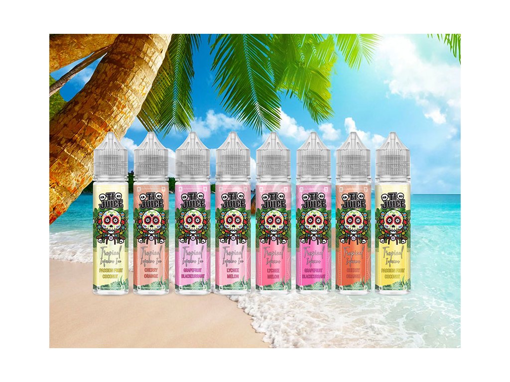 Svěží tropické příchutě Shake & Vape TI JUICE, řady Tropical Infusions jsou ideální příchutě pro celodenní vapování. Příchutě TI JUICE Tropical Infusions jsou vyráběny v České republice a nabízí do posledního detailu vyladěné tropické ovocné příchutě a originální design.