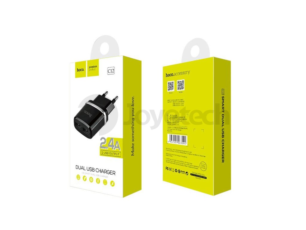 Nabíjecí adaptér do sítě Hoco C12 Dual USB (5V / 2,4A) (Černý)