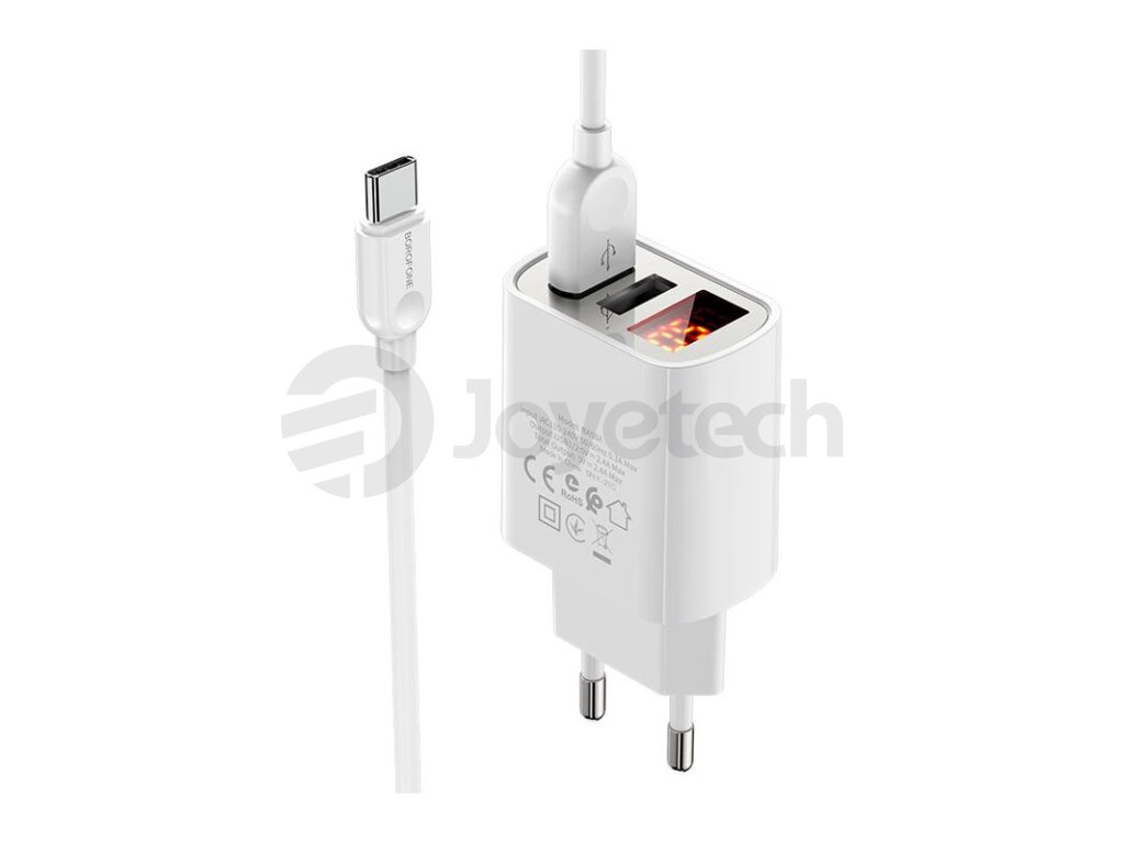 Souprava nabíjecího adaptéru do sítě a kabelu USB-C od výrobce Borofone s označením BA58A umožňuje rychlé a efektivní dobití všech zařízení s konektorem USB-C. Adaptér podporuje nový systém rychlého nabíjení s dobíjecím proudem 2,4 A. Adaptér dokáže efektivně dobít nejenom váš grip a e-cigaretu, ale také například mobilní telefon a jiná zařízení. Disponuje dvěma samostatnými sloty pro připojení kabelu, lze tak pohodlně nabíjet až dvě zařízení současně.