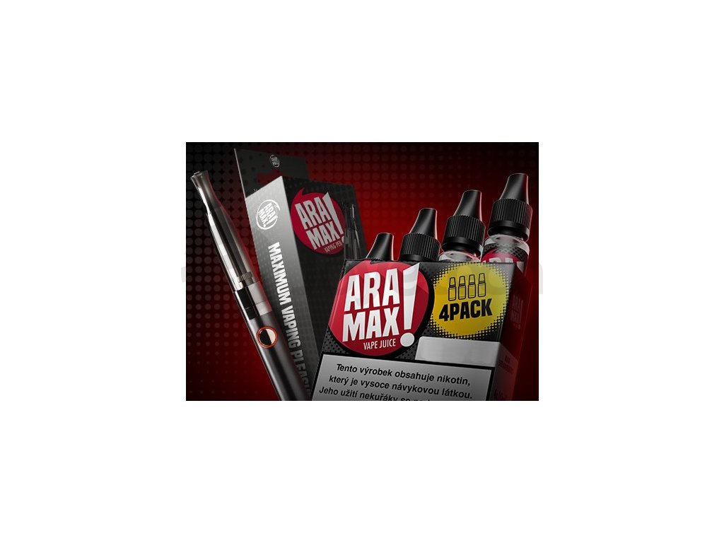 Zvýhodněná sada e-liquidu Aramax 4Pack Max Strawberry 6mg a e-cigarety Aramax Vaping Pen.
