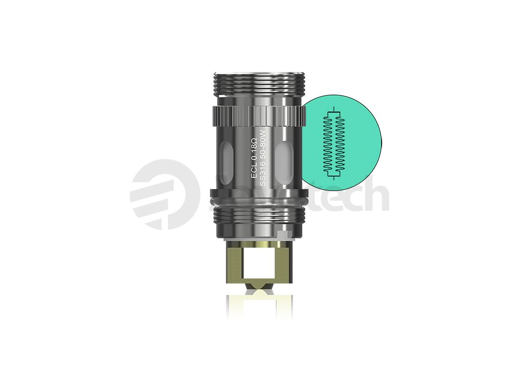 iSmoka-Eleaf ECL používá dvě spirálky (+ 100% organická bavlna), které jsou uloženy vertikálně paralelně, čímž se zlepšuje kouřivost a podání chuti liquidu. Nově zde máme větší otvory pro nasáknutí liquidu = daleko více kouře. Podporuje výkon 50W-80W. Podpora režimu TC. Je plně kompatilbilní s řadou žhavicích hlav EC