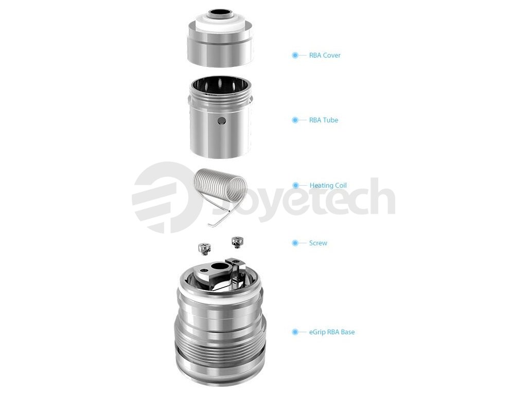 Některým pokročilým uživatelům se může zdát eGrip příliš komerční. To především z důvodu hotových žhavících tělísek, které nelze upravovat k obrazu svému a uživatel je tak odkázán na kvality výrobce. Joyetech proto připravil speciální RBA modul pro eGrip, do kterého si mohou pokročilí vapeři namotat vlastní spirálu a použít oblíbený knot nebo organickou vatu.