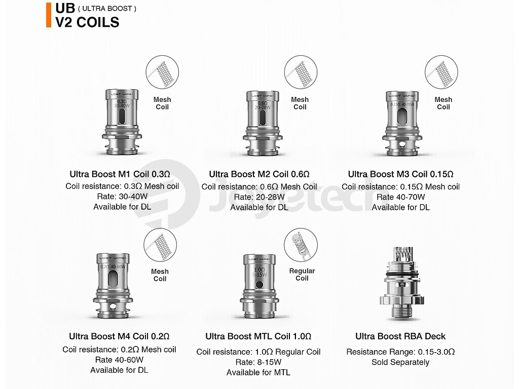 Náhradní žhavící hlava druhé verze Lost Vape Ultra Boost s Mesh spirálkou vhodná pro DL vapování s odporem 0,2ohm. Kompatibilní s modely Lost Vape Ursa Quest Multi Kit, Grus 100W Kit, Gemini Hybrid 80W Pod Mod, Q-Ultra, Thelma 80W Pod Mod, BTB 100W Starter Kit, UBX tank, Ursa Pod tank, UB Pod Tank. Doporučený výkon 40-60W.