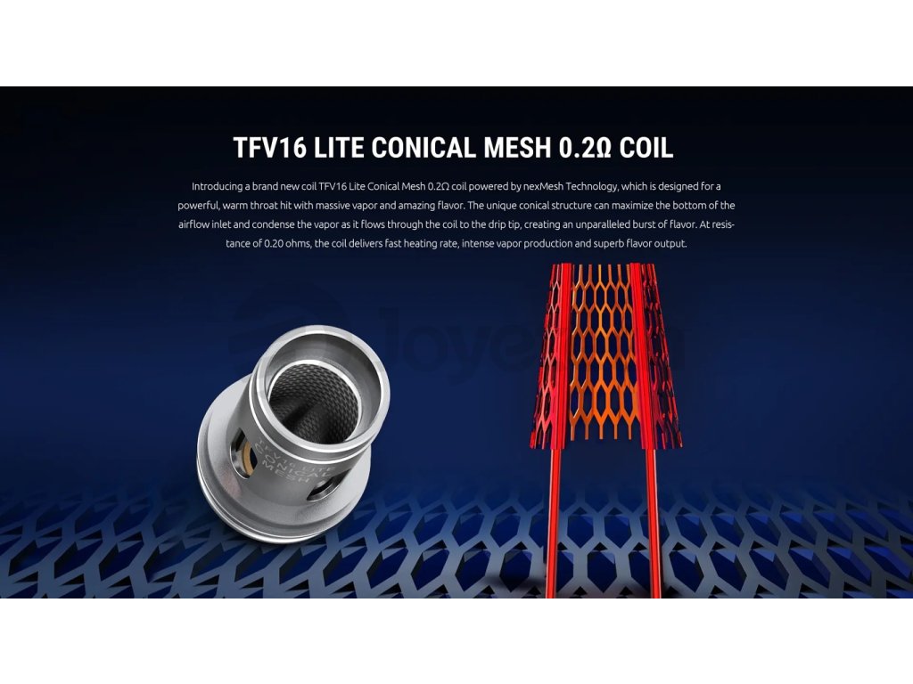 TFV16 Lite Conical Mesh 0,2Ω Žhavící hlava Smok TFV16 Lite Conical 0,2Ω produkuje o něco teplejší páru, s o něco menší produkcí páry, a její ideální rozmezí žhavení je mezi 60-85W. |